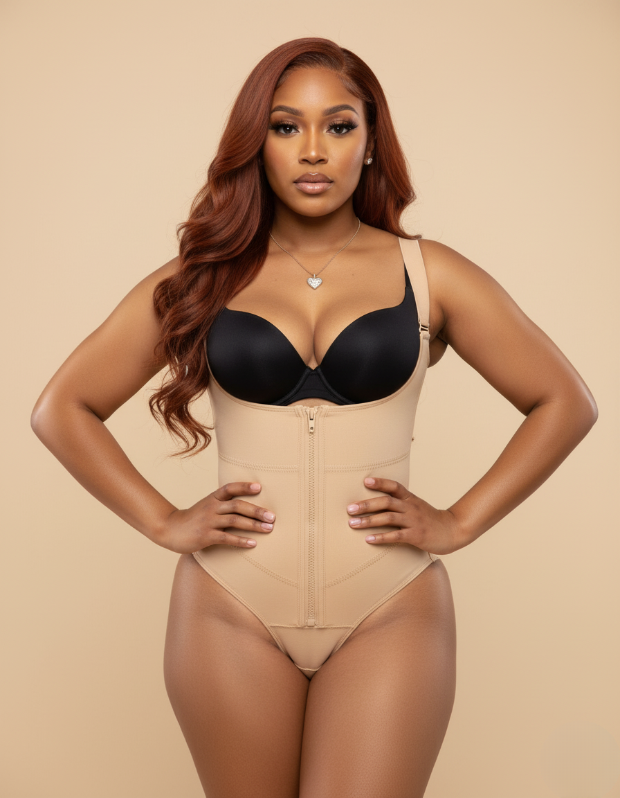 Achieve seamless, invisible contouring with the versatile Nude Thong Faja. This garment provides firm, supportive compression necessary for post-operative recovery, but its primary advantage is its discretion. The natural beige tone makes it completely undetectable under white or light-colored clothing, allowing you to focus on your recovery without sacrificing your wardrobe choices. It sculpts the abdominal area firmly while the thong design ensures your BBL results remain untouched.
